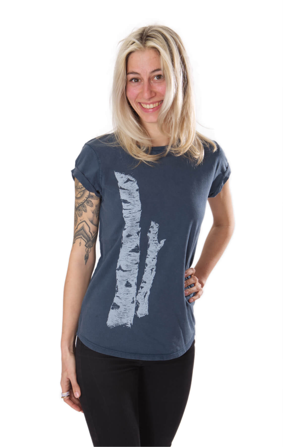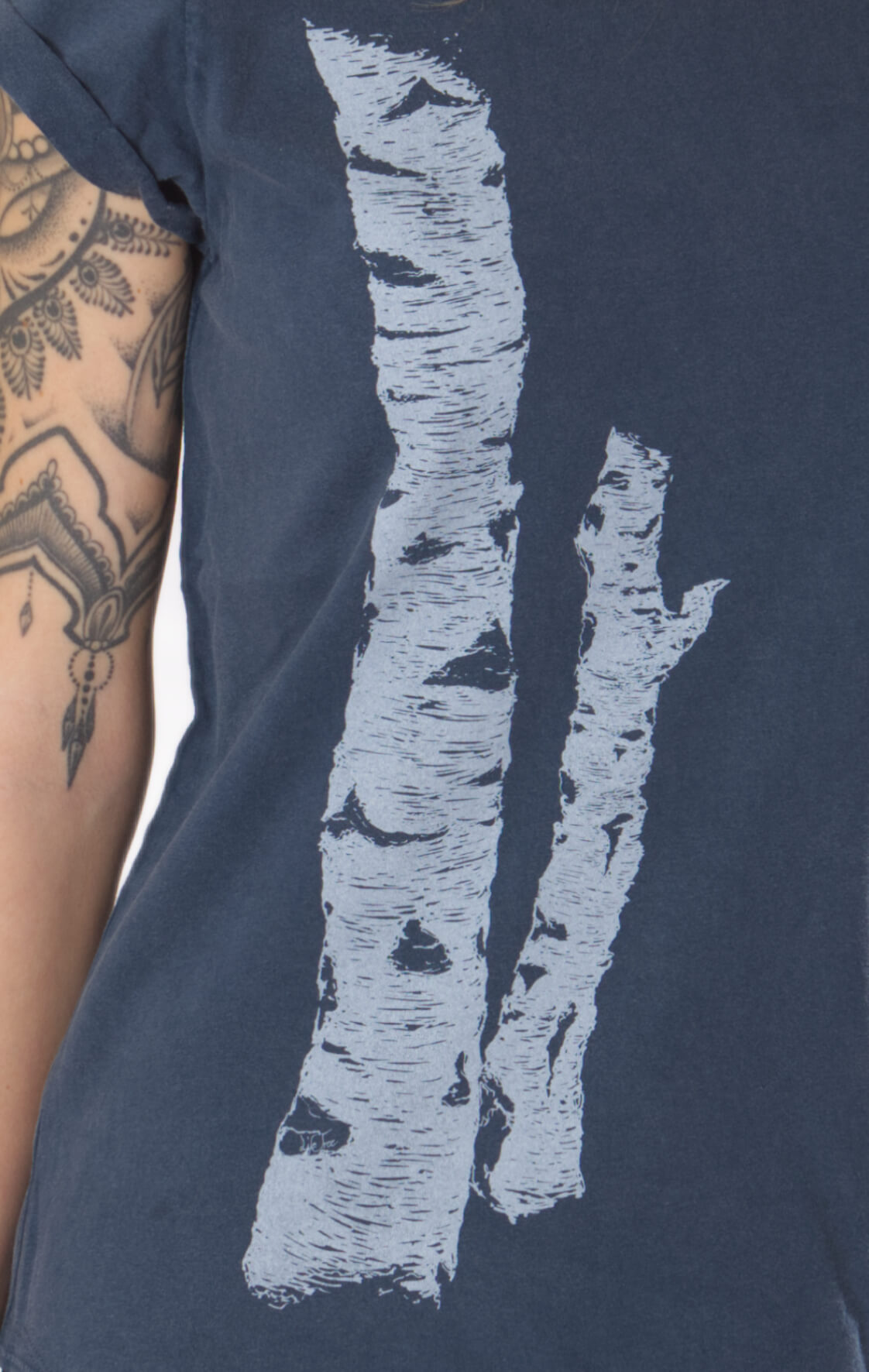 | Details | Rundhalsausschnitt Aufdruck "Birkenstamm" |